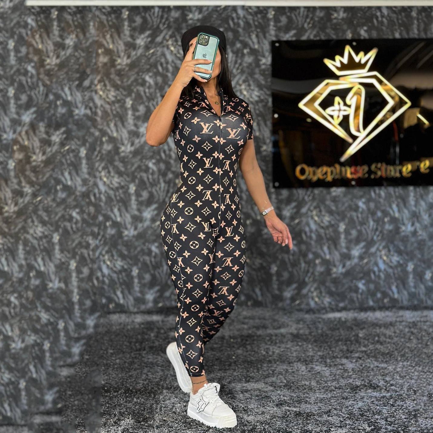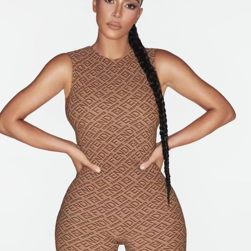 Trendy Printed Short Sleeve Zipper Women's Sexy Tight Stretch Jumpsuit XC0823110112