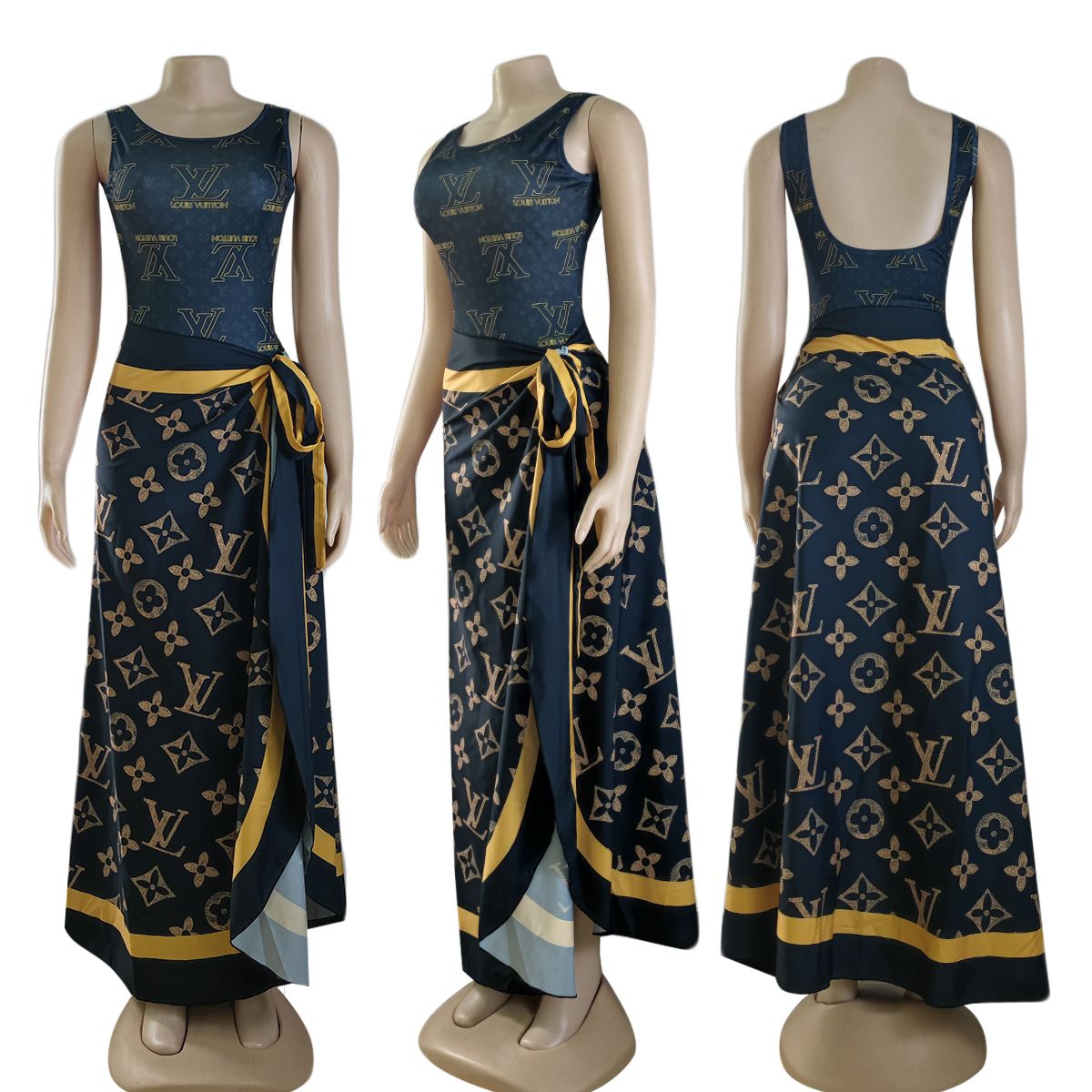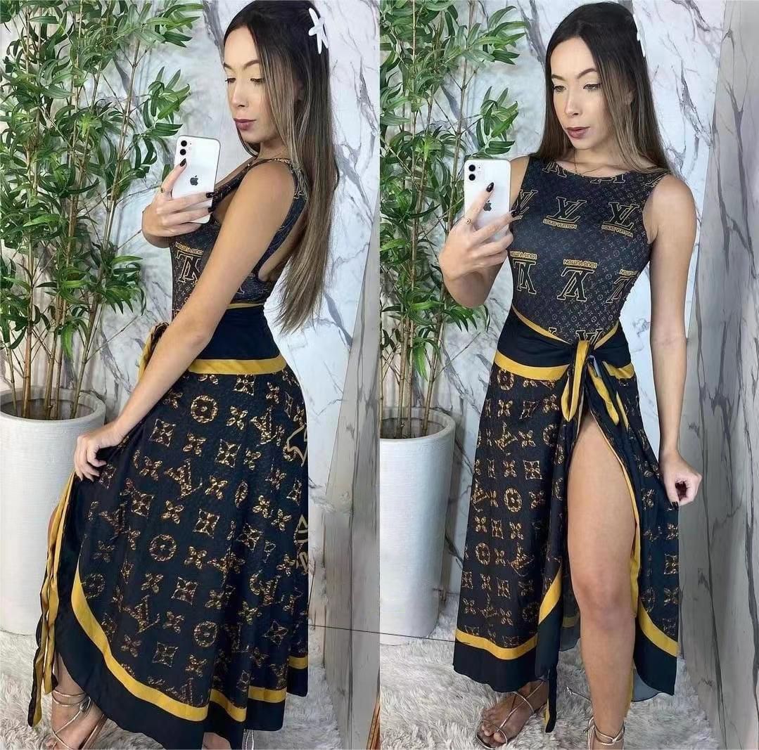 Sexy sleeveless lace-up swimsuit beach skirt two-piece set XC0823110305