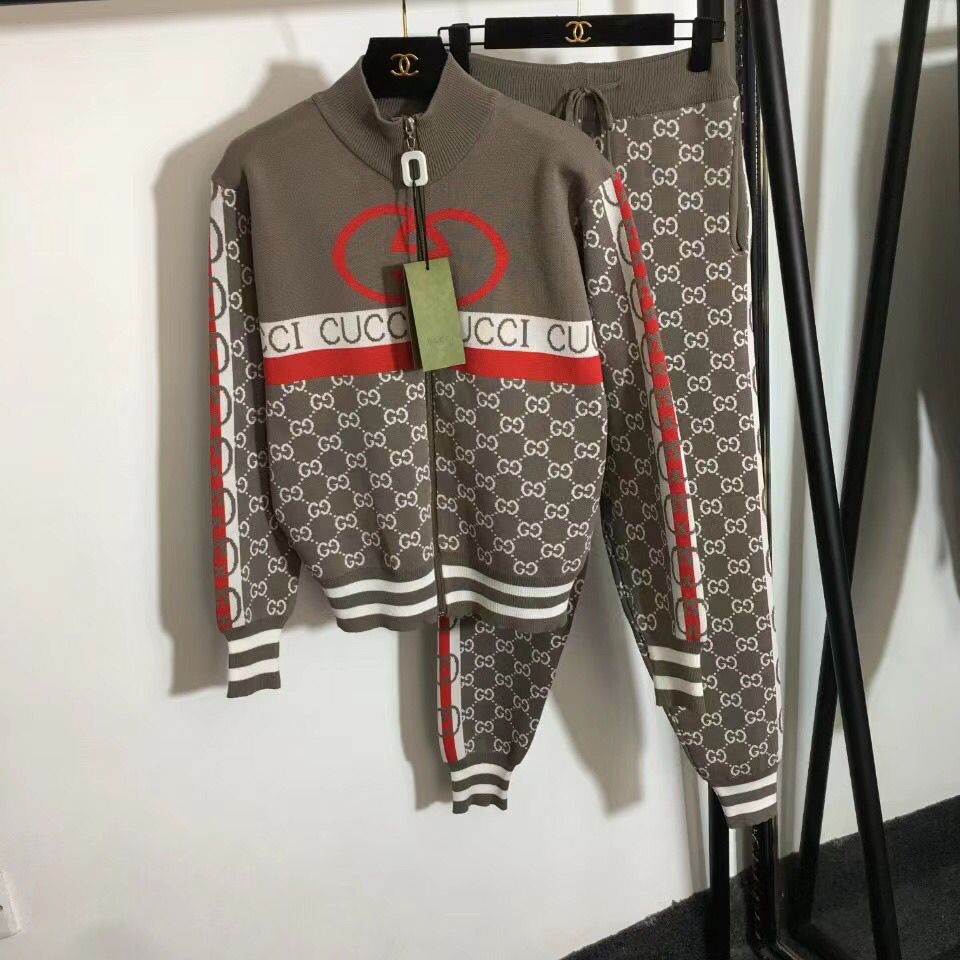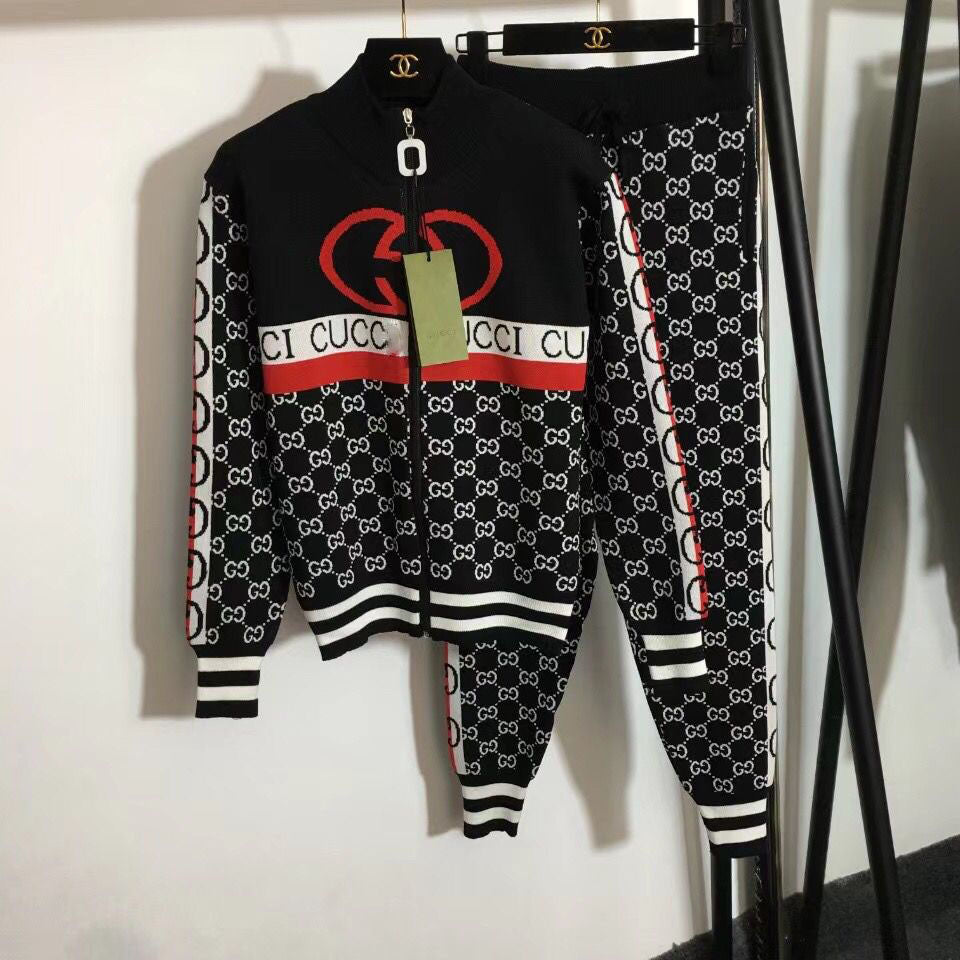 New fashion knitted casual cardigan hooded letter top + knitted pencil pants two-piece suit S07
