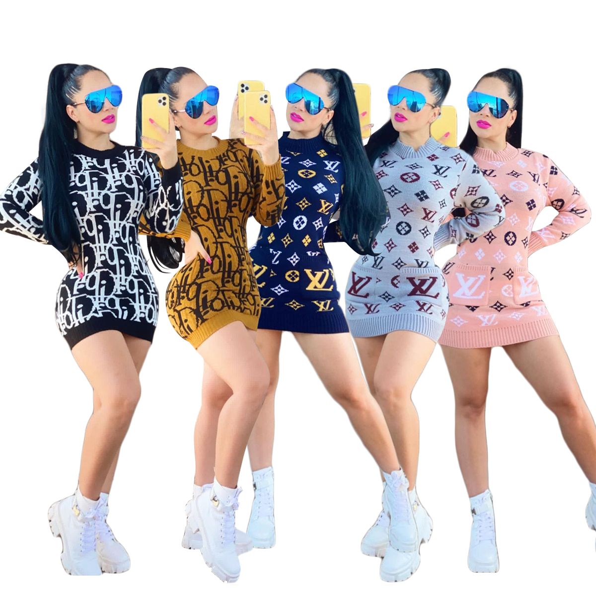 Women's hip-covering knitted sweater dress XC0823103112