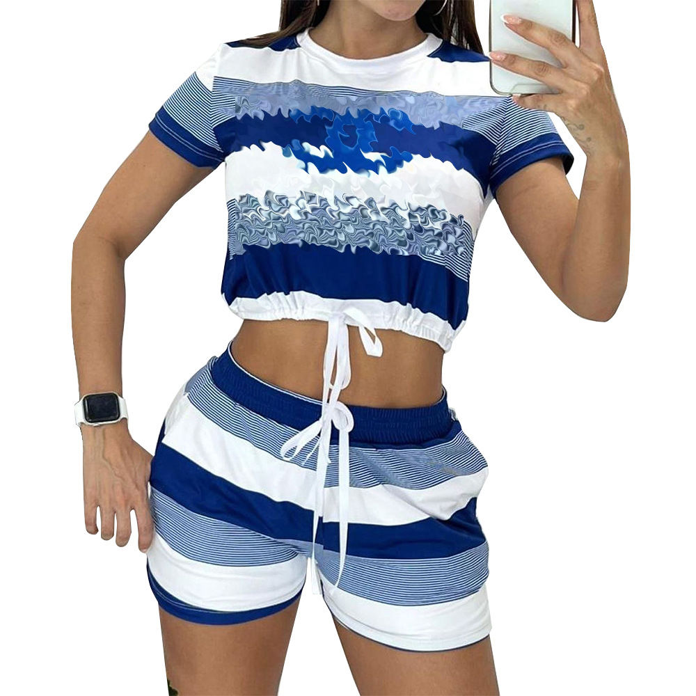 New Outdoor Casual Fashion Printed Rope Two-Piece Set PD10041809
