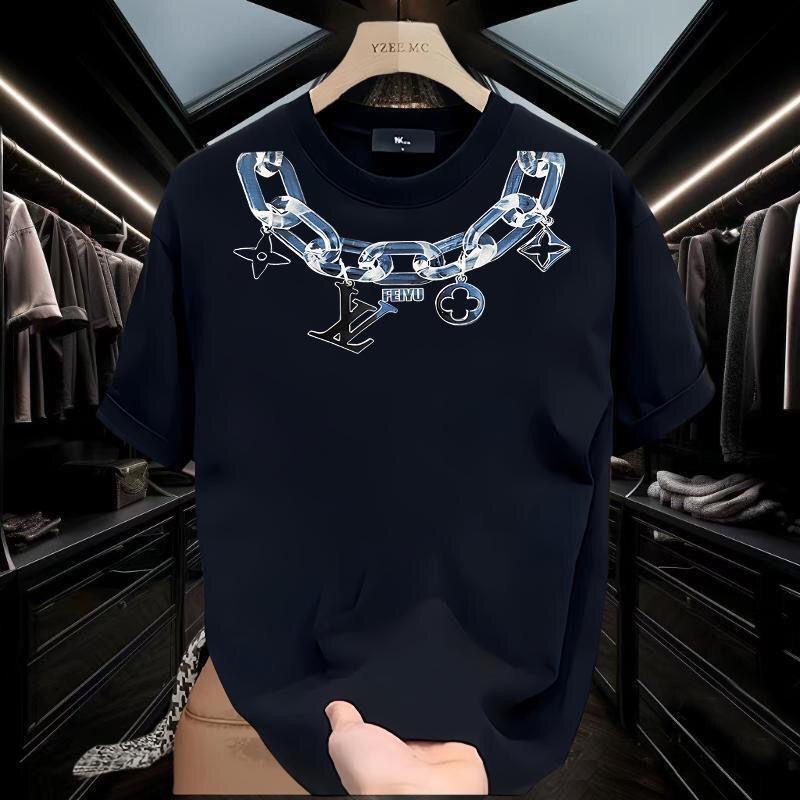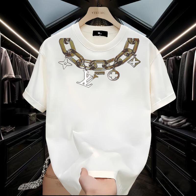 Cotton Short-sleeved T-shirt Men's New Loose Crew Neck Creative Necklace Printed 1024032101
