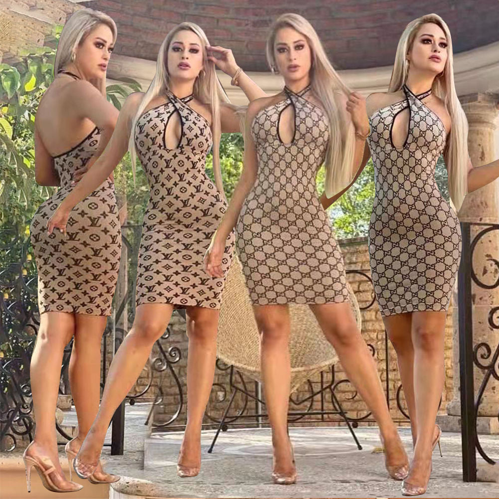 LV Women's Sexy Bodycon Dresses Spaghetti Strap 3D-0425031419