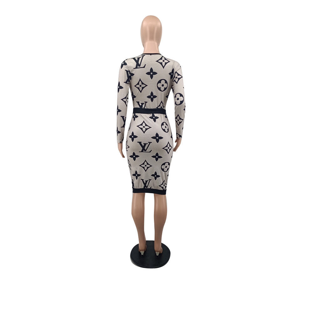 Printed Round Neck Slim Fit Dress PD10051805
