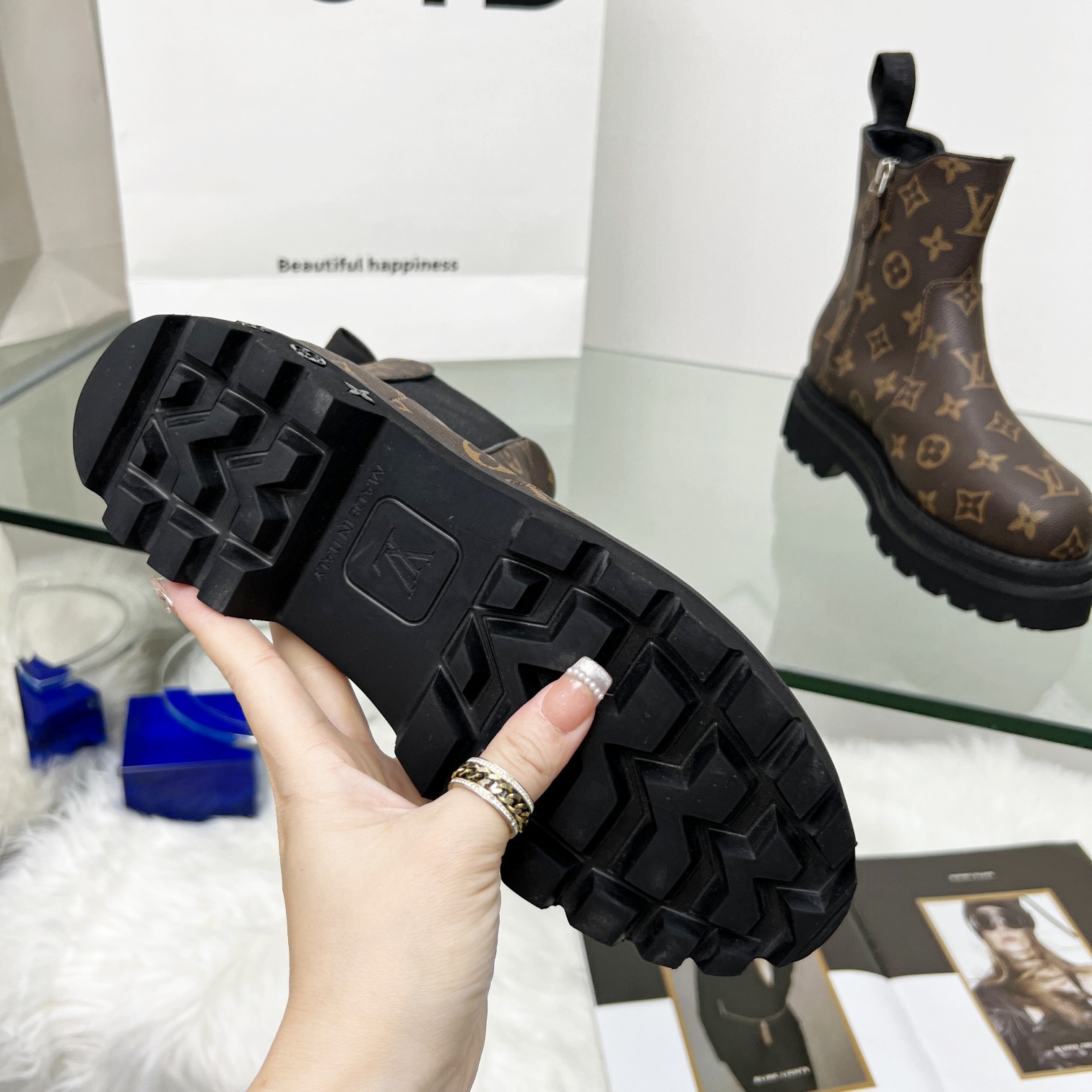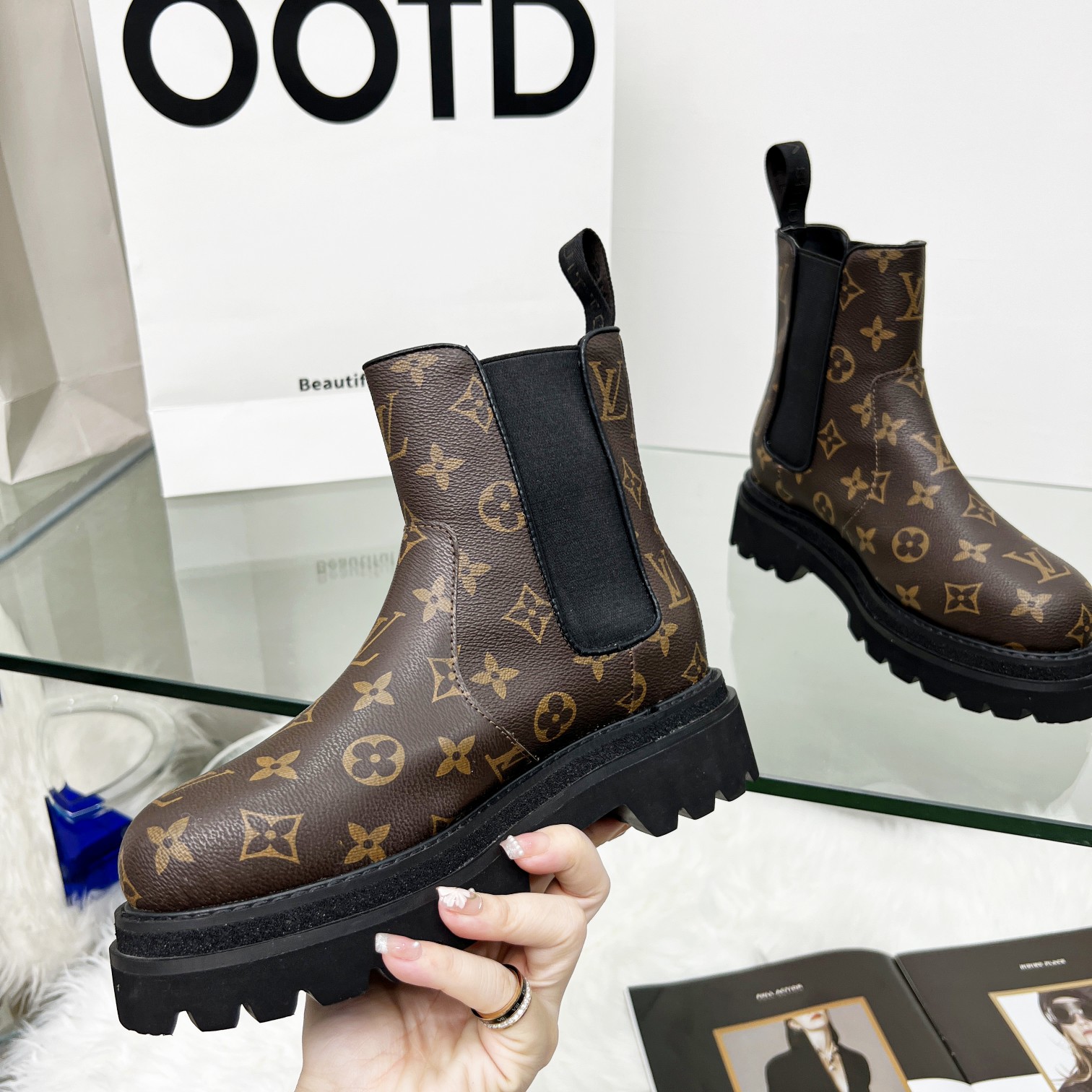 2023SSS Early Autumn V Logo Print Fashion Versatile Short Boots