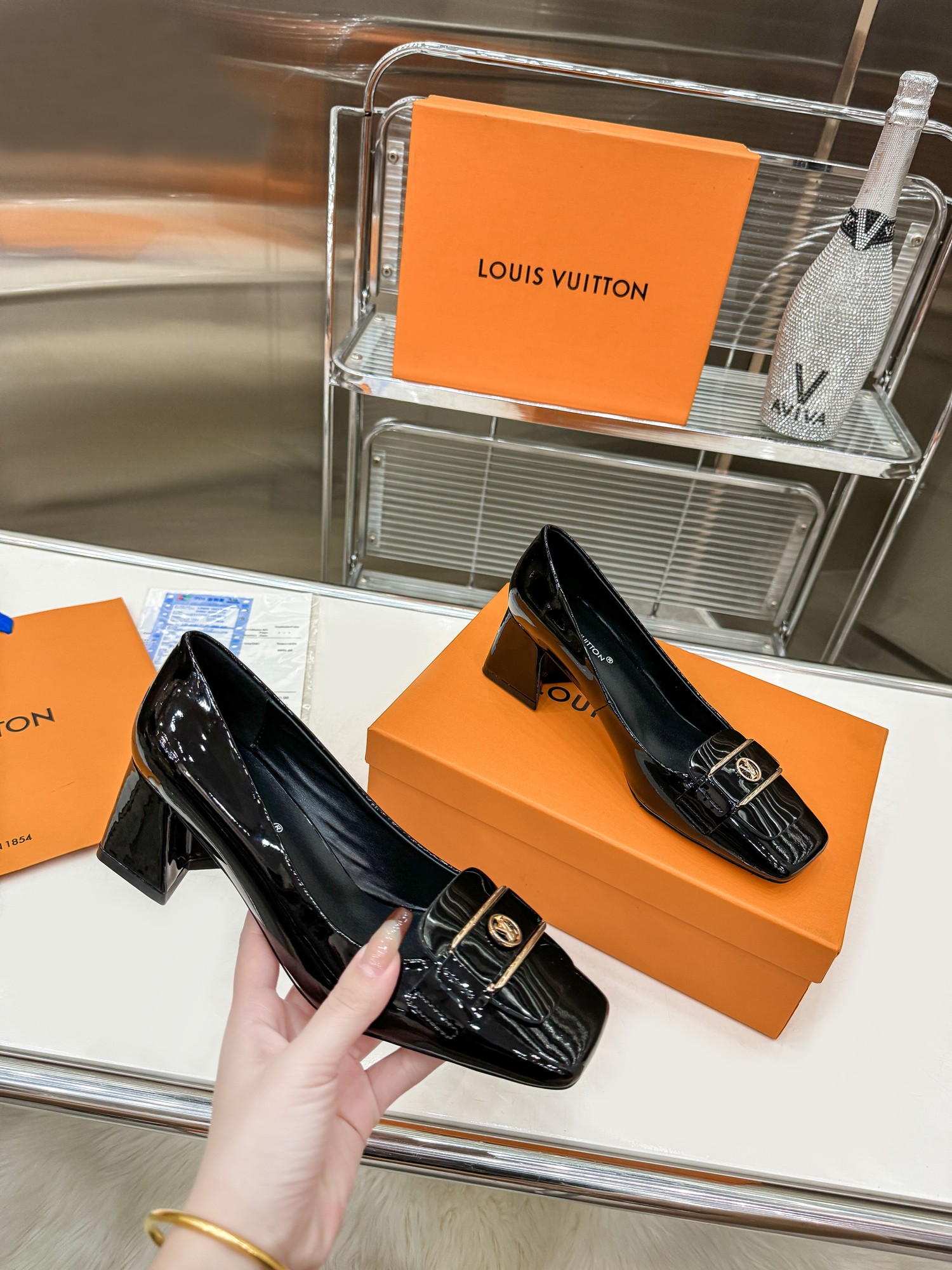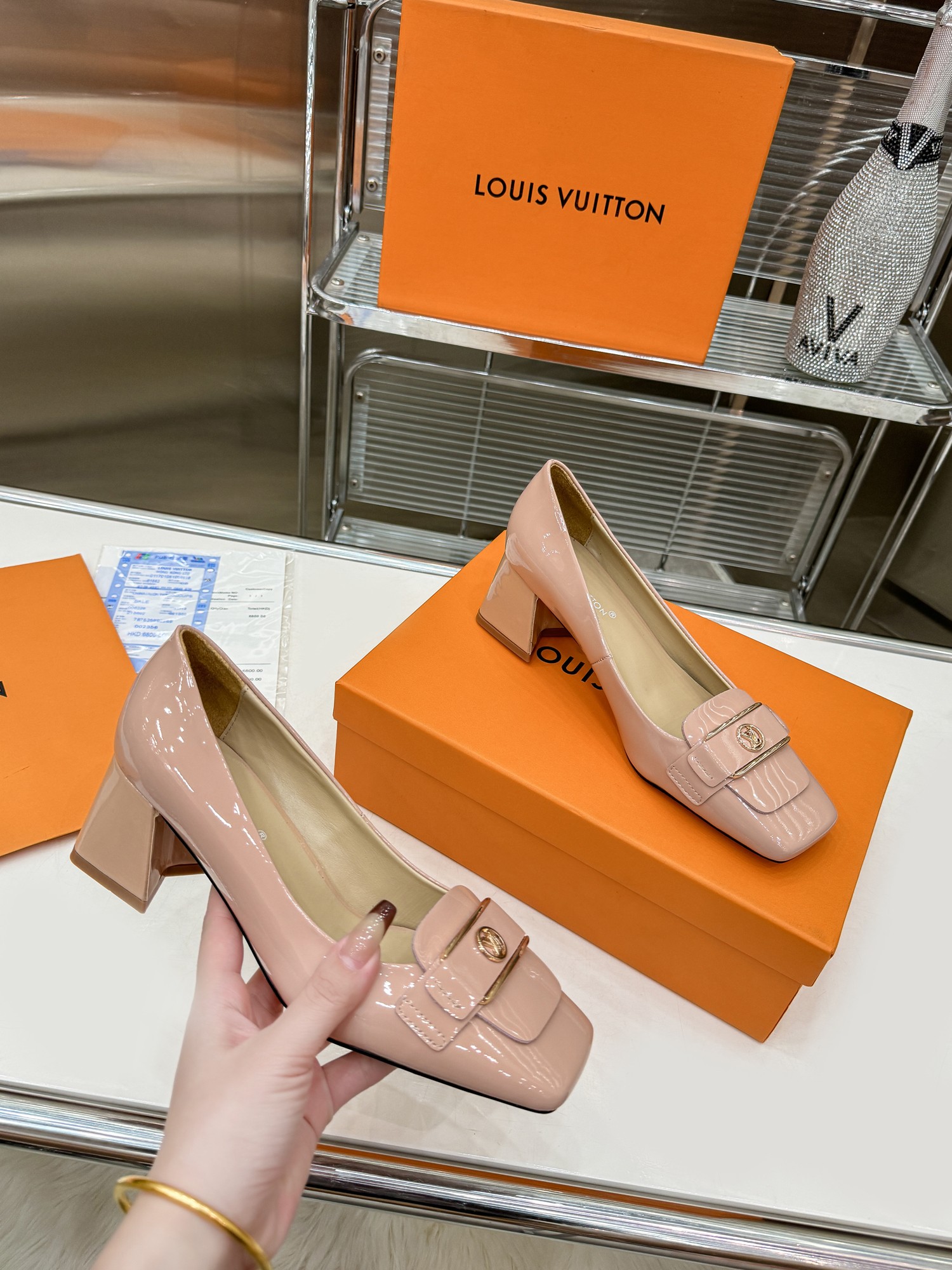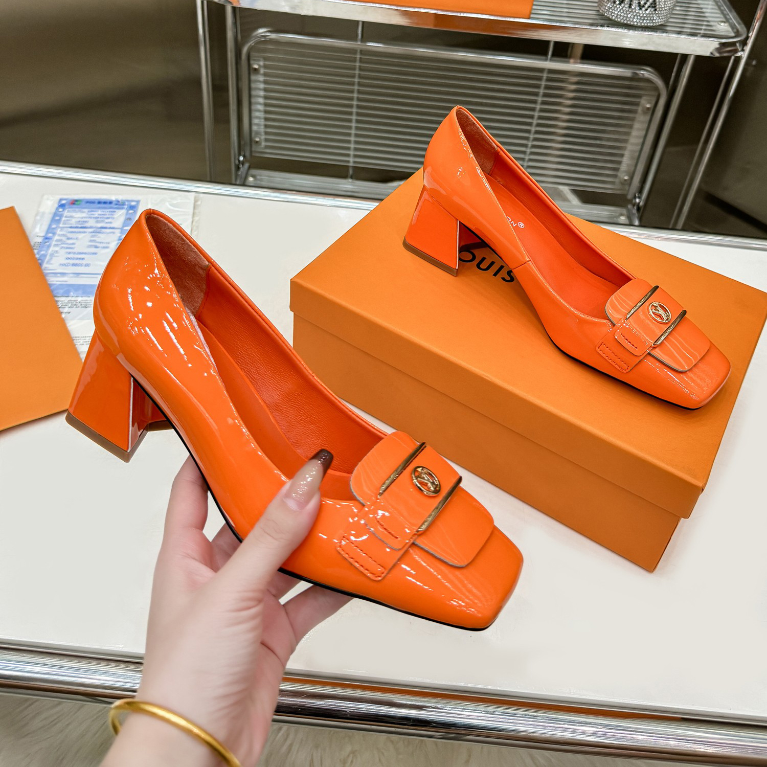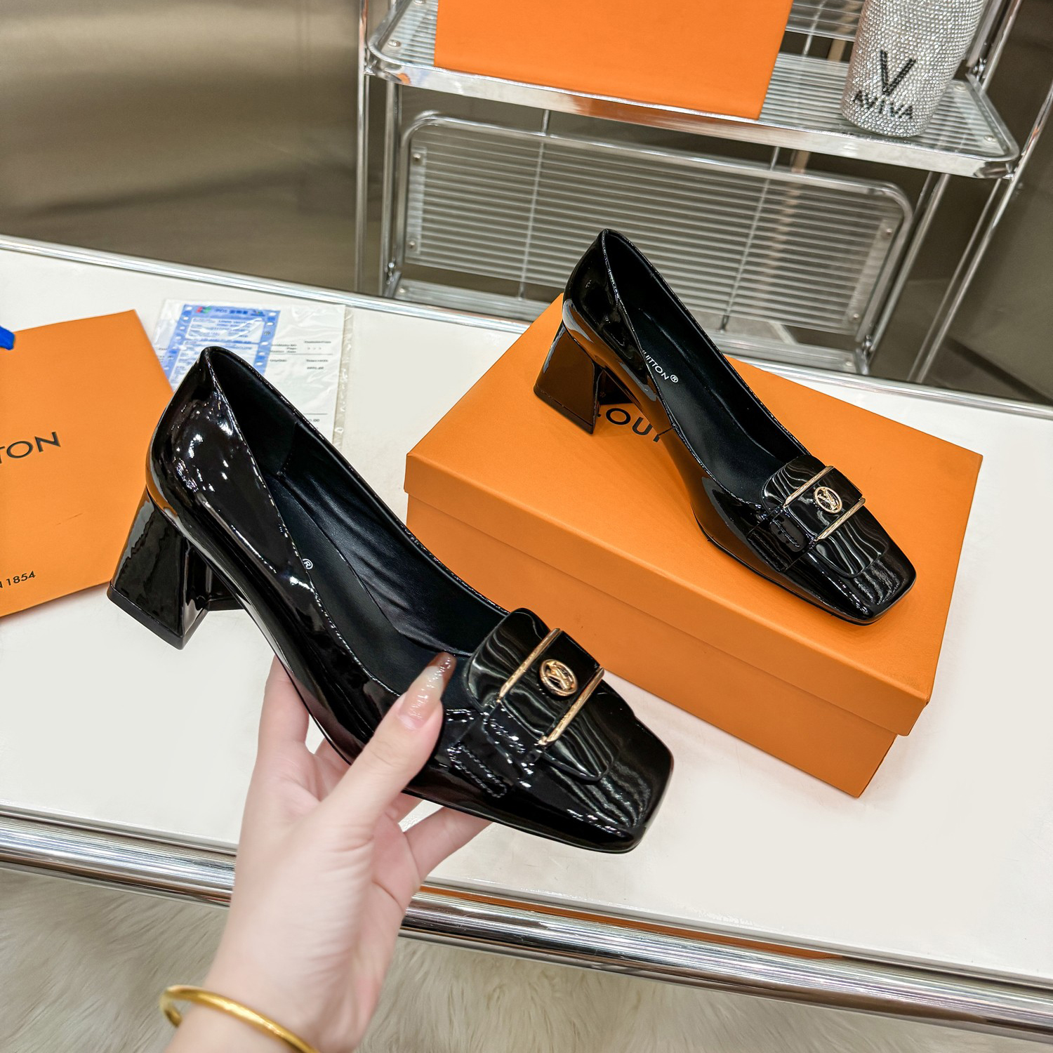 • 2024 Early Spring Latest Women's Square Toe Block Heel High Heels XC0424022001