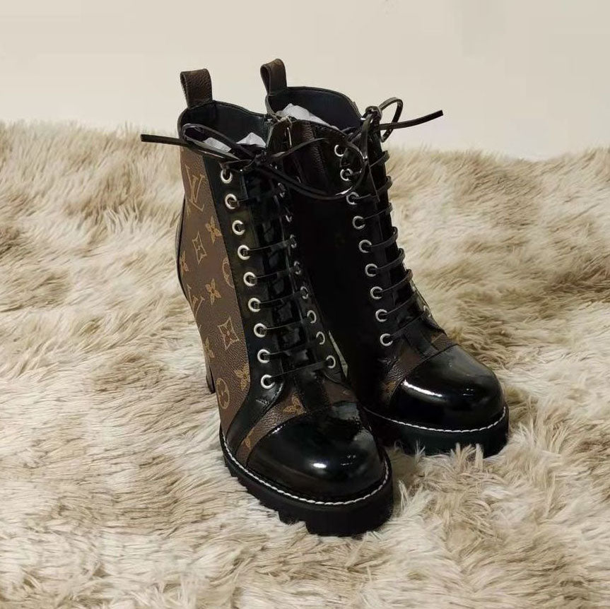 • New autumn and winter British style thick-soled women's shoes thick heel round toe thin belt side zipper short boots non-slip wear-resistant boots