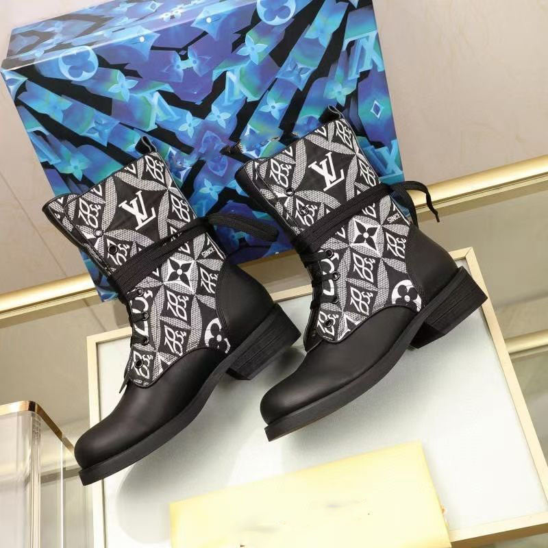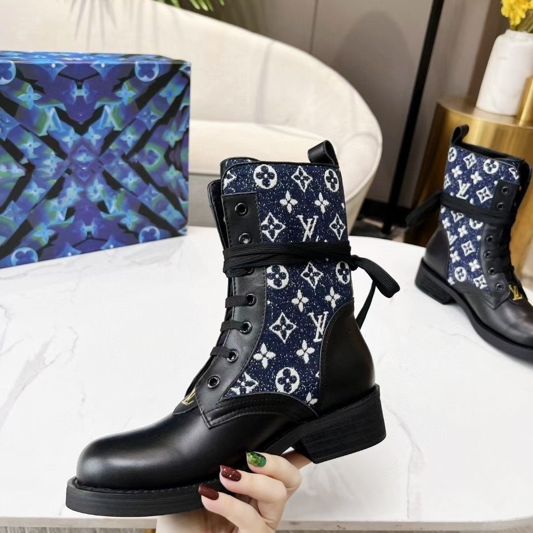• Classic new fashion flat women's boots in the tube lace up Martin boots autumn and winter women's shoes all-match with letters