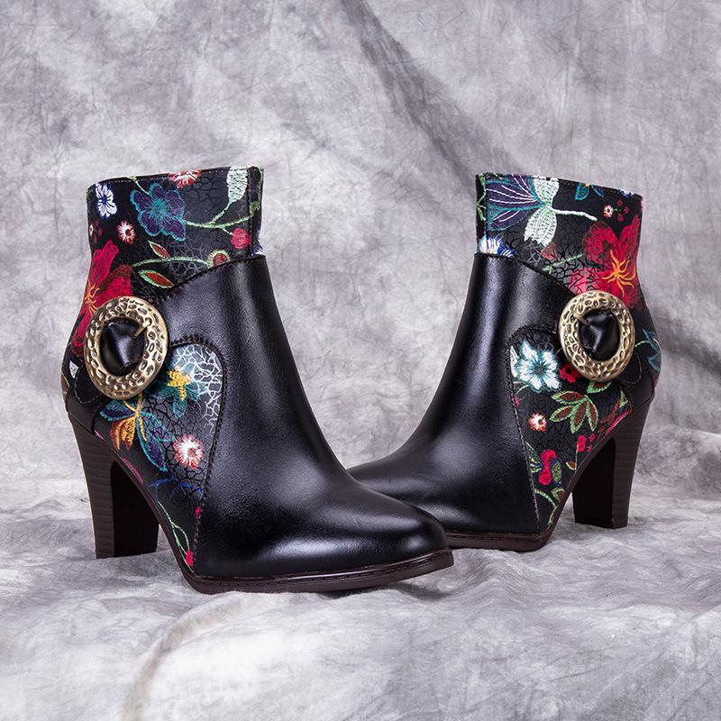 Fashion retro high-end patterned women's short boots PF1023110716