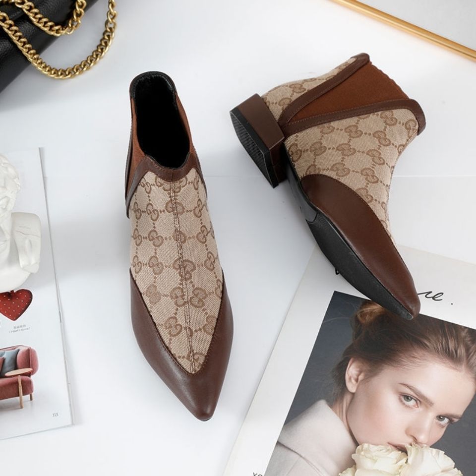 Martin boots women's short boots autumn and winter new European and American flower thick heel ankle boots high heel round toe low boots