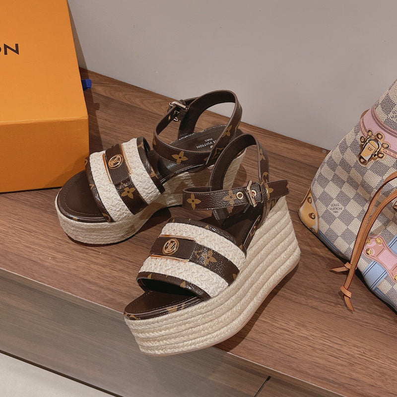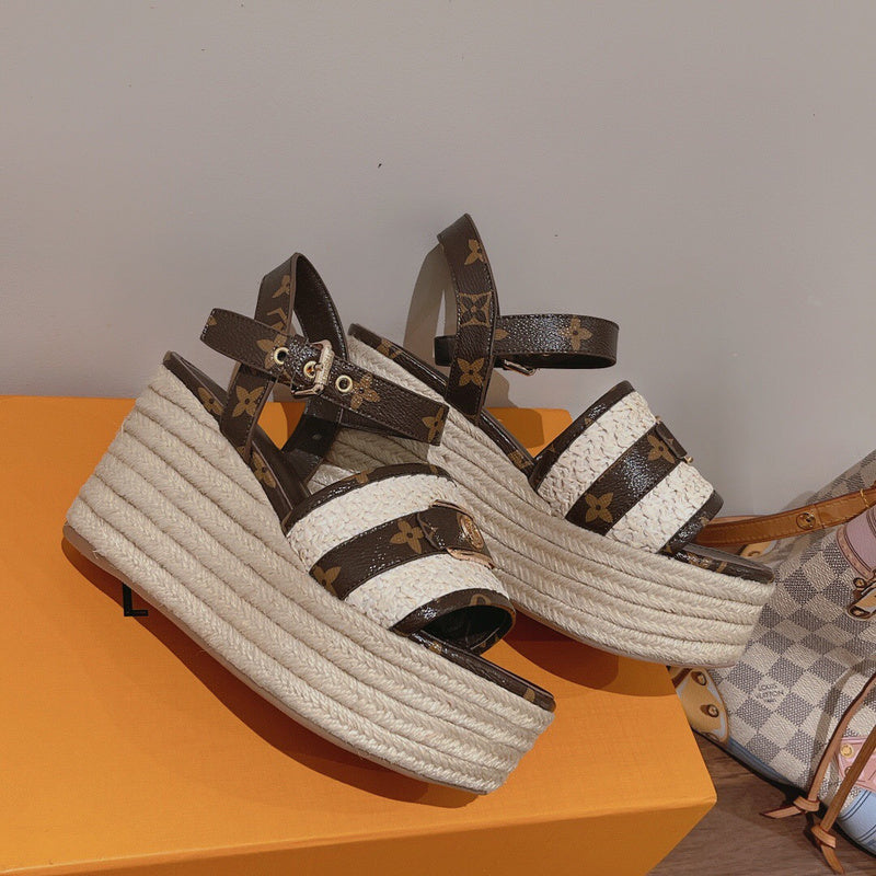 23 New Top Retro Beach Roman Style Street Ins Style High Heel Slippers Sandals