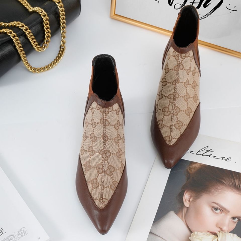 Buckle pointed toe short boots women's Martin boots women's autumn new trendy short tube stiletto boots S01