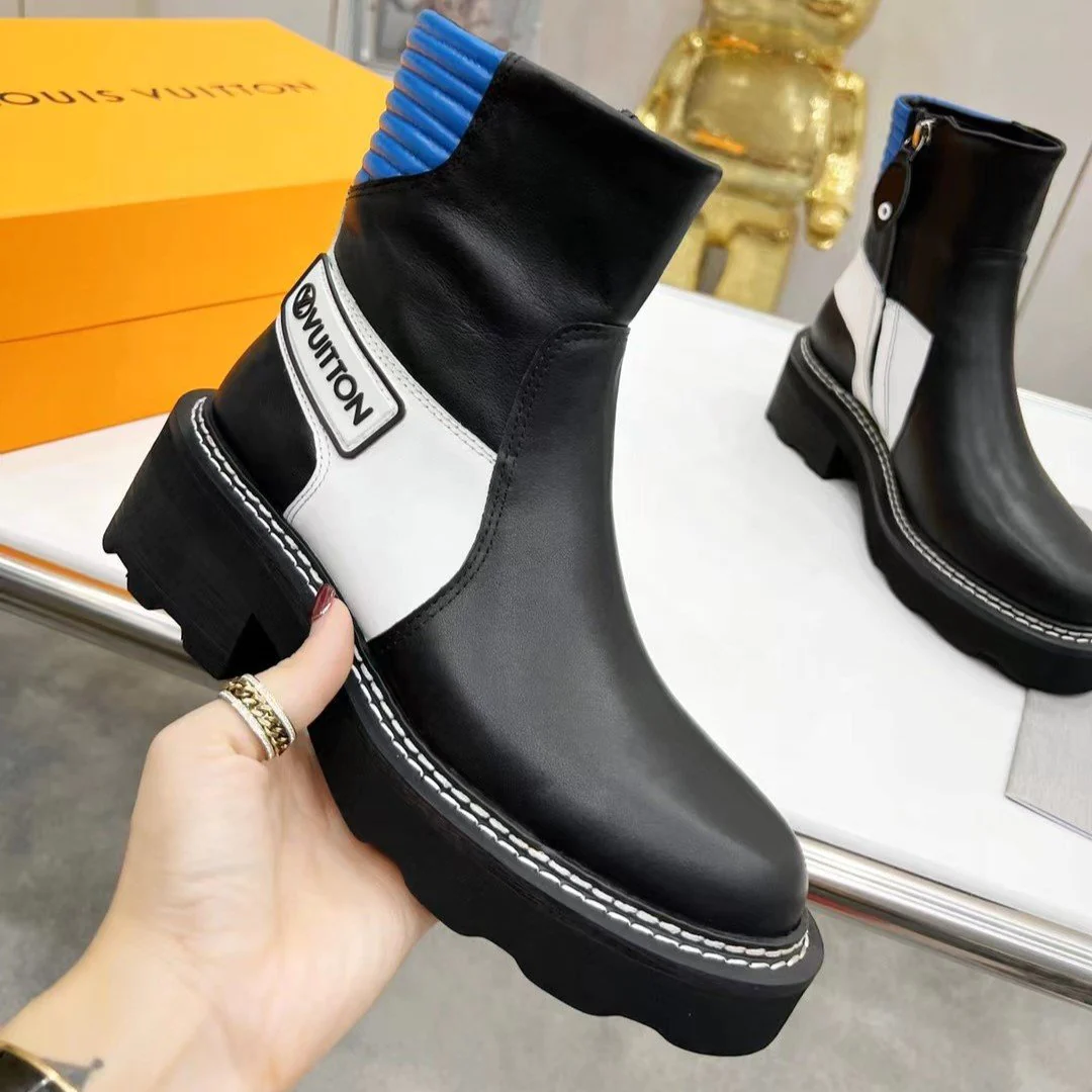 Martin boots women's new leather short boots flat side zipper letter belt niche simple fashion all-match single boots
