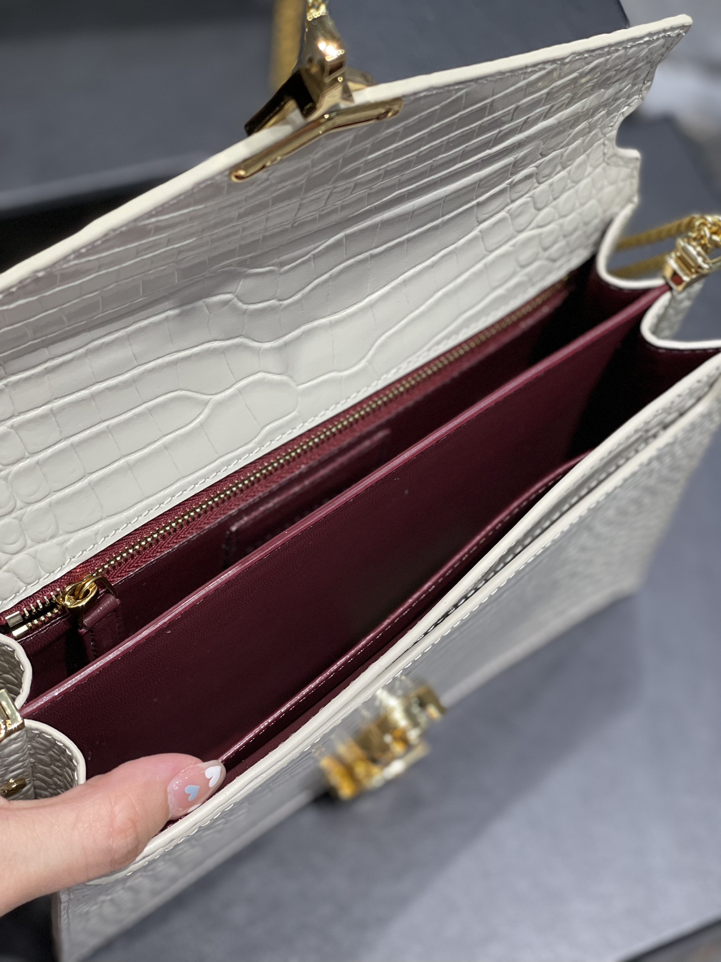 • Saint Laurent Cassandra Medium Chain Bag White In Grain De Poudre Embossed For Women 0425020807